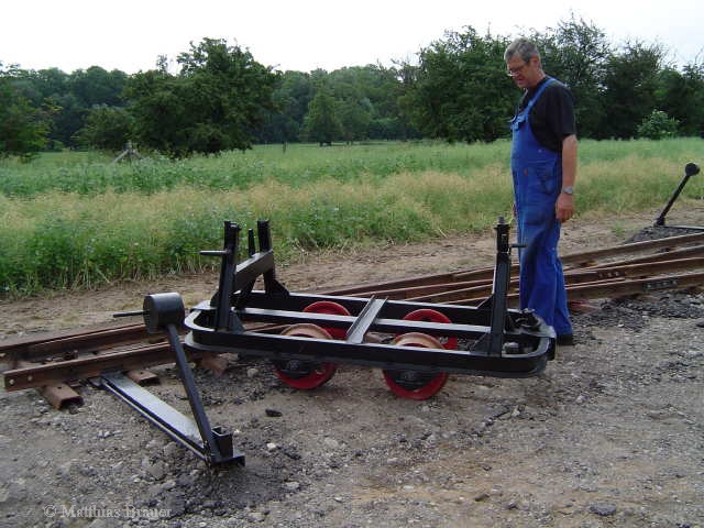 die erste Lore wird auf das Gleis gestellt |