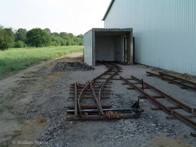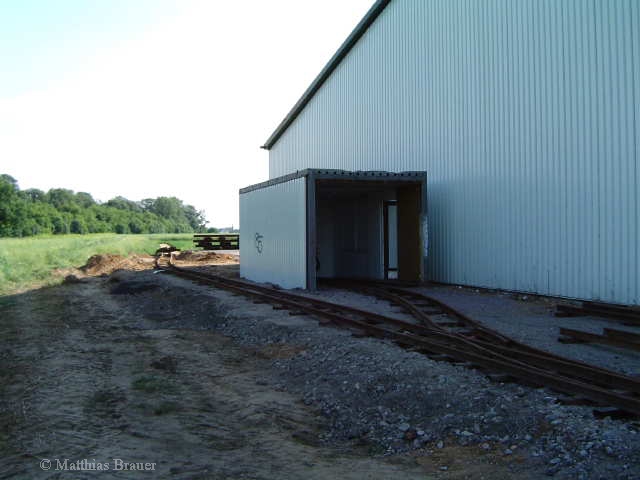Der Abstellbahnhof ist bis auf den alten Lokschuppen und dessen Weiche verschwunden. Durch den Neubau einer weiteren Lagerhalle und deren Kühlanlagen mussten beide Abstellgleise weichen. Der Neubau ist geplant und wird in Kürze begonnen... Es wird ein Hauptgleis entstehen welches sich direkt an den nächsten Gleisbogen unseres Rundkurses anschließt. Des weiteren kommt ein paralleles Ausweichgleis und ein Abstellgleis hinzu. Der alte Lokschuppen bleibt bestehen und wird neu angebunden.